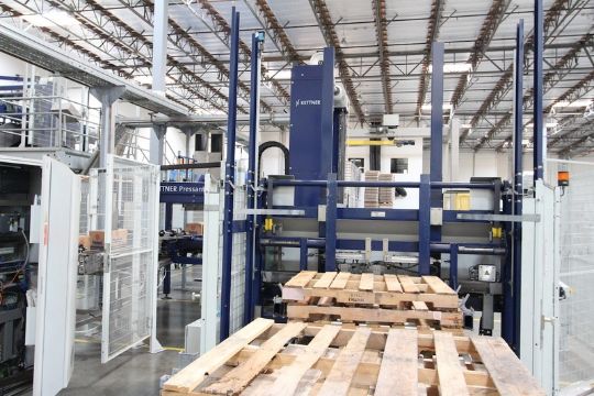 2002 Krones Kettner Low Level Palletizer, Auto Pallet Index Feeder, Auto Take Off Conveyor Feed, Allen Bradley PLC Controlled, Includes 20ft of Pallet Conveyor, S/N: 22-0441-014, Dims: 25ft L x 8ft W x 10ft H, Speed: 35-40 CPM, Electricity: 460V 60HZ 3PH 35A, Shipping Weight: 12000 lbs, Asset Number: 2221