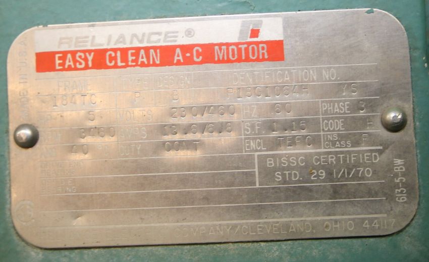 Tri Clover 5 HP Centrifugal Pump, Model C215MDG-18T-S, S/N Z24824 with 2"x1.5"Clamp Type S/S Head, Reliance 3460 RPM Motor, 230/460V 3 Phase (W737) Rigging/Handling Price: $100 *please note price does not include packaging, skidding, etc.