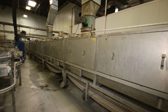 Aero Glide S/S Cooling Tunnel, with 144" W Belt, Overall Dims.: Aprox. 84 ft. L x 14 ft. W, with Related Duct Work and Blowers, Cold Water Internal System