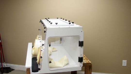 Flow Sciences, Inc. 4' PP Glovebox Workstation, Model FSCQ03850, S/N 04-V-05-02Mesh Box Top, DIMS: 48"L x 27.5"W x 24"T***Located in NC***