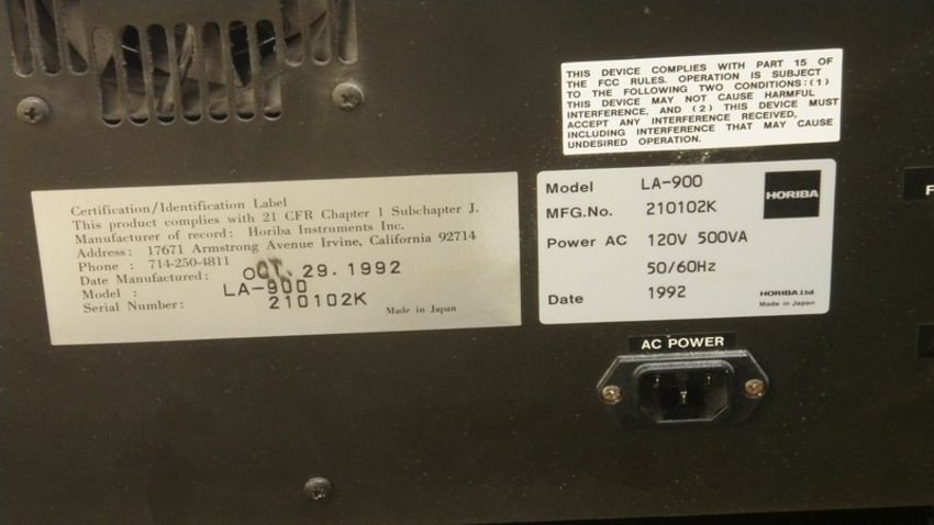 HORIBA LA-900 Laser Scattering Particle Size Distribution Analyzer, S/N 210102K, (NOTE: Unit Powers On and Lights Illuminate.)***Located in NC***
