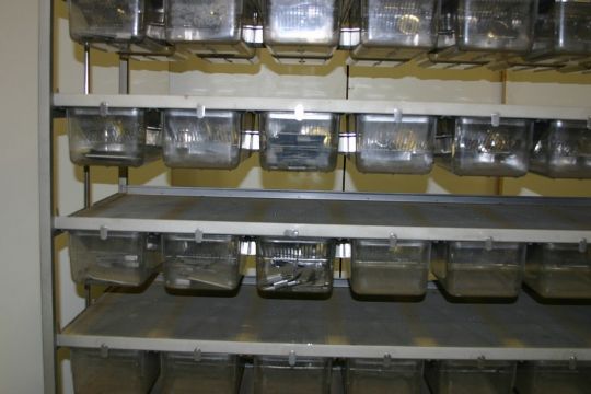 Lab Products Rodent Plastic Caging Housing, Approx. Dims: 60"x29"x60", 35 Bins per Side, Equipped with Plumbing for Automatic Feeding***Located in NC***