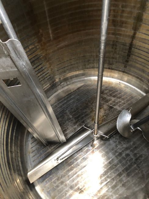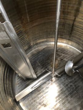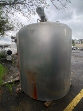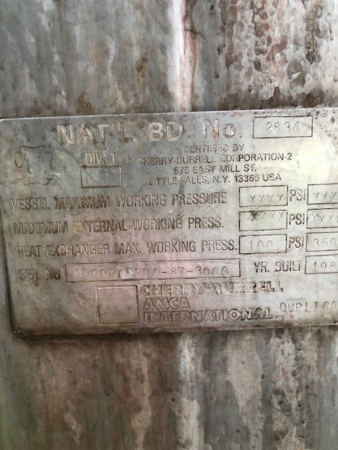 Cherry Burrell S/S Jacketed 1,000 Gallon Processor, Model 1000 PAFP DA – 87 – 3060, Dual Motion Top-Mount Agitation, Single Prop Agitator, Bottom-Sweep Agitator, Side Wall Baffle (Rigging and Handling Fee: $1,000) (Legs and Motor Removed Prior to Shipping. Both Available and Will Ship with Processor)
