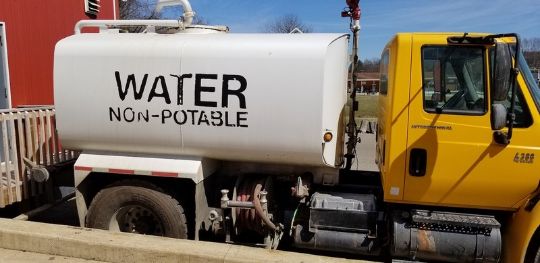 2004 International 4300 Tanker / Water Truck, VIN 1HTMMAAL45H116866, with DT 466 with Diesel Engine, Air Brakes & Automatic Transmission, 241,830 Metered Miles, with 2007 Curry Supply Company 2500 Gallon S/S Tanker, Model 902138, 5 Position Sprayer, with On-Board Pump, (Yellow) ***LOCATED IN MINERVA, OH***