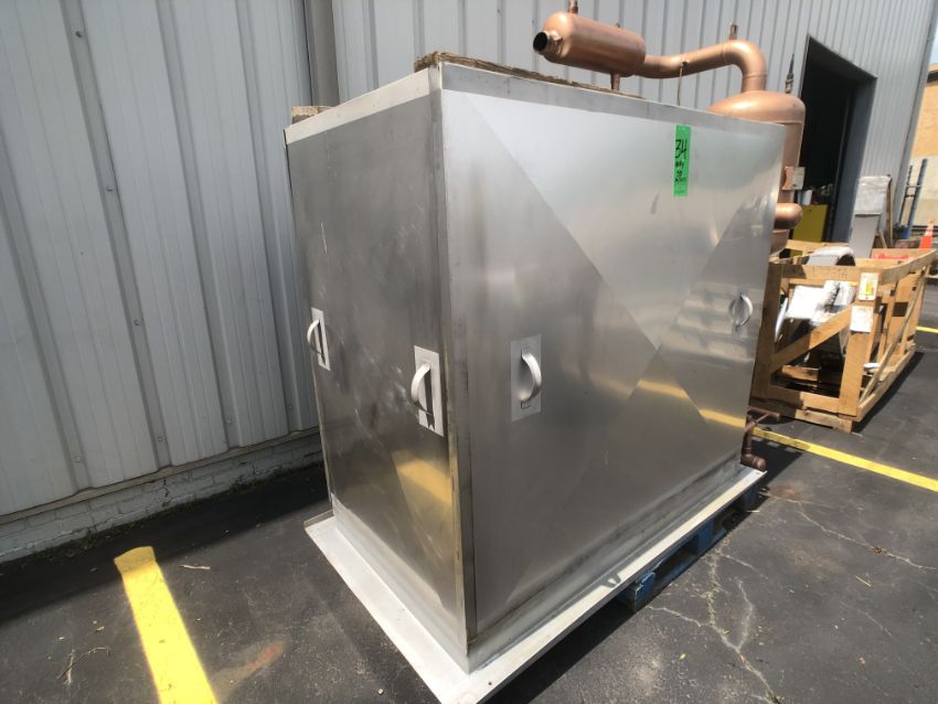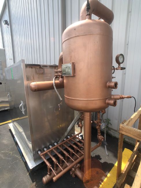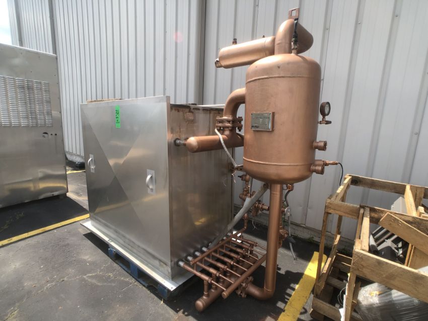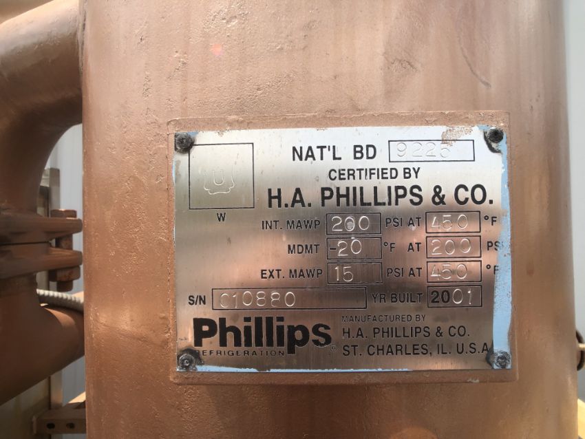 Chester Jensen Freon Falling Film Plate Chiller, Model XB-8-OT-8-32, S/N 0114-P, 8-Sections, Phillips Refrigeration Accumulator, S/N 010880, National Board # 9226, MAWP 200 PSI @ 450 Degree F, MDWT -20 Deree F @ 200 PSI, Ext MAWP 15 PSI @ 450 Degree F (Rigging and Handling Fee: $200)