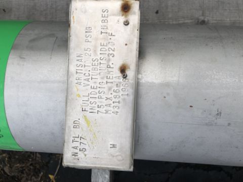 Approx 13’ x L x 11” W S/S Shell and Tube Heat Exchanger, Full Vac to 25 PSIG, Inside Tubes 75 PSIG, Outside Tubes Max Temp 320 Degree F, 43186-A, Nat Board 577 (Located at M Davis Group Auction Showroom in Pittsburgh, PA) (Rigging & Handling Fee $200.00)