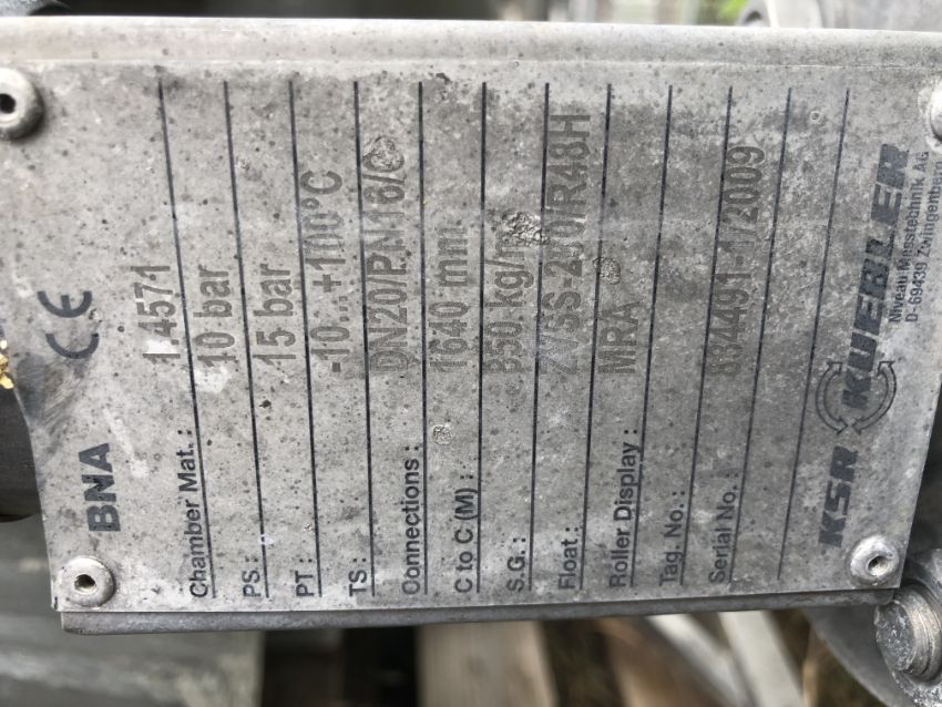 KSR Kuebler BNA Approx. 350 gallons Insulated S/S Tank, S/N 834491-1/2009, Equipped with Heat Exchanger Bundle Inside Tank, Approx. Dims: 3’ Dia. X 6’6” H, PSI: 10 bar, PT: 15 bar, TS: -10...+100 Degree C, 316 L S/S, Chamber Mat: 1.457-1, Connections: DN20/PN16/C, Float: ZVSS-200/R48H, Roller Display: MRA, S.G: 850. KG/m, C to C (M): 1640 mm (Located at M Davis Group Auction Showroom in Pittsburgh, PA) (Rigging & Handling Fee $200.00)