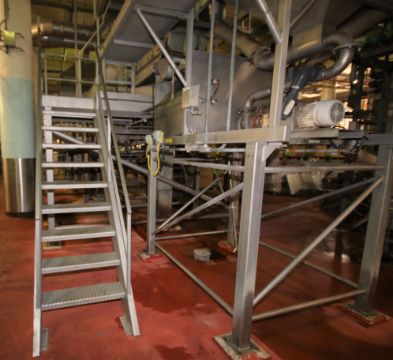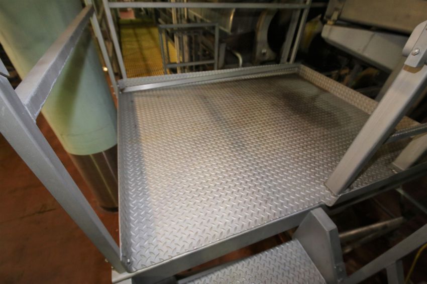 12 ft L x 52" W x 9 ft H S/S Operators Platform (Shaker Observation Deck), with Diamond Plate Floor, Stairs & Handrail, (Note: Center of Platform is Cut Out Around Deck - Does Not Run Full Length) (Located at 1080 River Avenue, Pittsburgh, PA) (Rigging Price: $750)