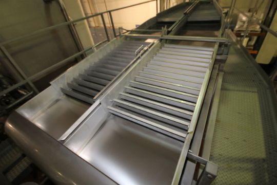 15 ft L x 45" W 2 - Section S/S Flume, 7" to 21" W x 6" D, Includes Drain Pan & 24" W x 9 ft 8" H U - Shaped Surrounding S/S Operators Platform with Handrail, (Some Supports Included) (Located at 1080 River Avenue, Pittsburgh, PA) (Rigging Price: $1,750)