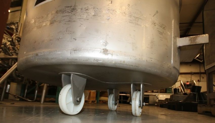 BULK BID ITEM #45 TO ITEM #60: 2013 Loos Portable S/S Round Column Dump Tote, Model 1121-001, with Plastic Lid, Aprox. 49" W x 24" Deep (Aprox. 200 Gal. Each), (Total Weight Aprox. 290 lbs Each) (Rigging & Loading Fee $425.00) (Located in Pittsburgh, PA)