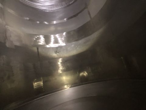 4,650 Gallon S/S Dome-Top Dish-Bottom Jacketed Brite Tank, CIP Spray Ball (BB 6) 105” x 168” high