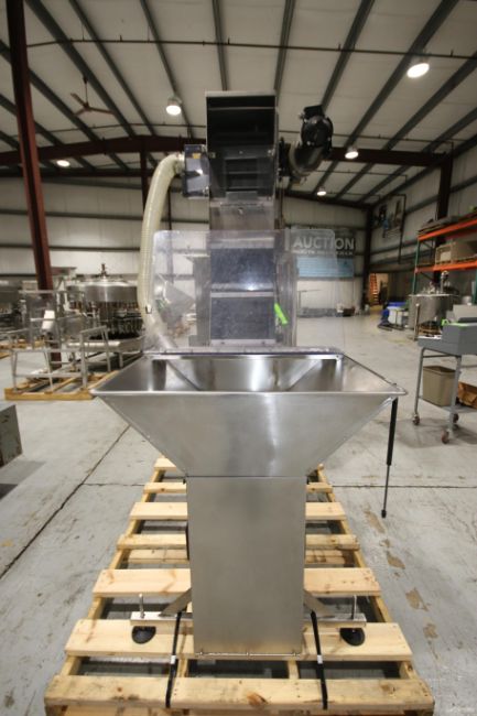 U.S. Bottlers Elevated S/S Feed Cap Hopper. with Drive, Aprox. 16" W Conveyor (Rigging & Loading Fee $200.00)(Located in Pittsburgh, PA)
