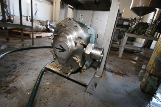 Waukesha 5 hp Positive Displacement Pump, Size 130, S/N 2237, Baldor 1725 RPM Motor, with (1) 3" Clamp Type Inlet/Out & (1) 3" Thread Type Inlet/Outlet