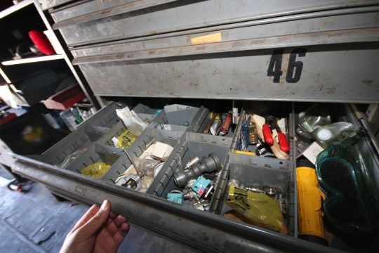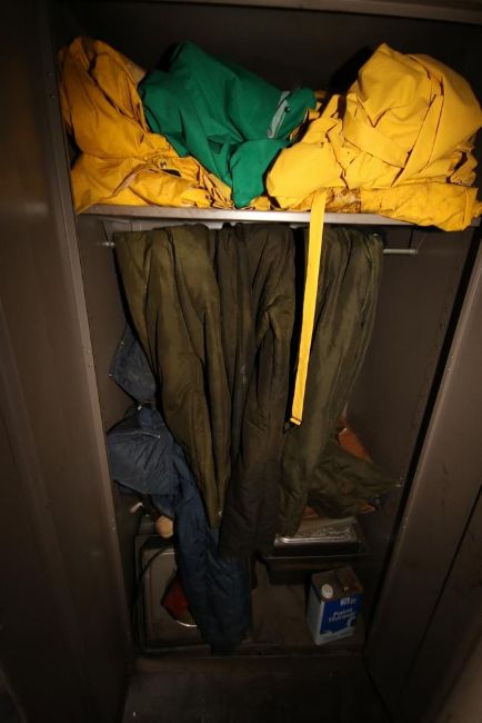 Double Door Aluminum Storage Cabinet, with 7-Drawer Hardware Cabinet, with 5-Shelf Unit, with Contents Including Full Body Freezer Suits, Nuts & Bolts, Pressure Gauges, and Other Present Content Associated with Lot (NOTE: Does NOT Include Spray Paint Cans)