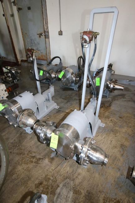 { Choice of lots: 182, 183, 184 } Tri-Clover Positive Displacement Pump, M/N PR300-6F-TC1-4-SL-S, with 4" Clamp Type Inlet/Outlet, Hydraulically Driven, Mounted on Frame