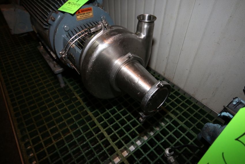 Tri-Clover 25 hp Centrifugal Pump, M/N C328MD28T-60ND-01U-15SP S/N 546825-01, with U.S. Electrical 3520 RPM Motor, 200/208 Volts, 2" x 3" Clamp Type Inlet/Outlet,