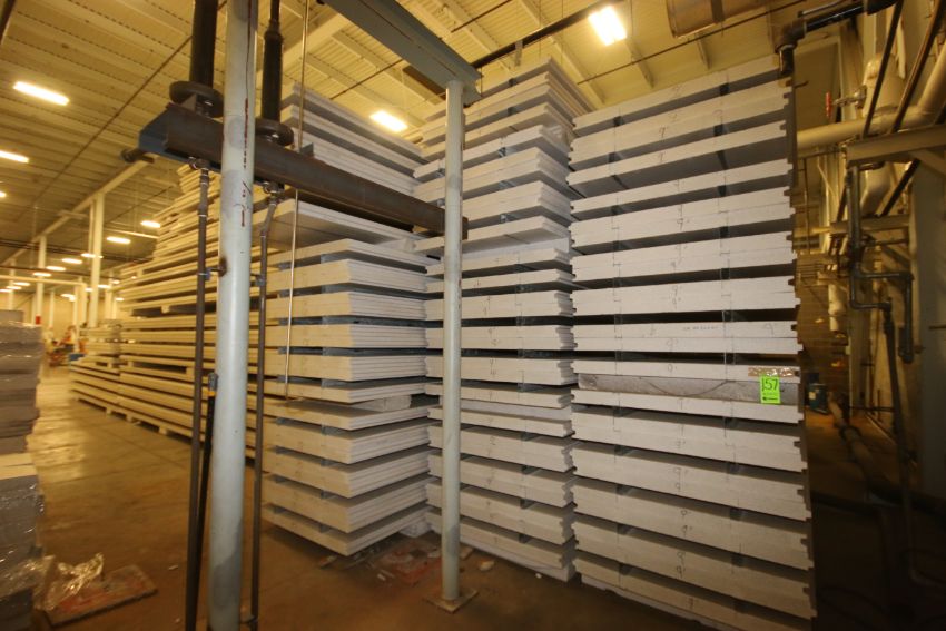 { Choice of lots: 155, 156, 157 } Aprox. (175) Stryofoam Panels, with Galvanized Iron Studs, Dims. of Panels Includes: Aprox. 9' L x 4' W x 3-1/4" Thick, 12' L x 4' W x 3-1/4" Thick, 23' L x 4' 1" W x 3' 1" Thick