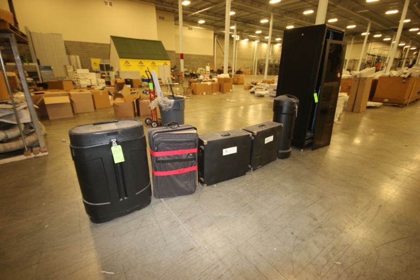 { Group of lots: 244, 245, 246, 247, 248, 249, 250, 251, 252, 253, 255, 256, 258, 259, 260, 261, 262, 264, 265, 266, 267 } Assorted Trade Show Travel Cases, with Black Box Server Rack, with Door and Sight Glass