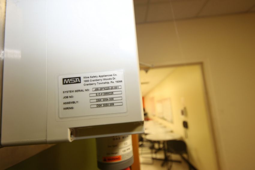 Gas Monitor System, S/N J08-2956225-20-001, with (3) Industrial Scientific Gauges, (1) NEW In Box MSA Automated Test System, Includes Wall Mounted Monitor