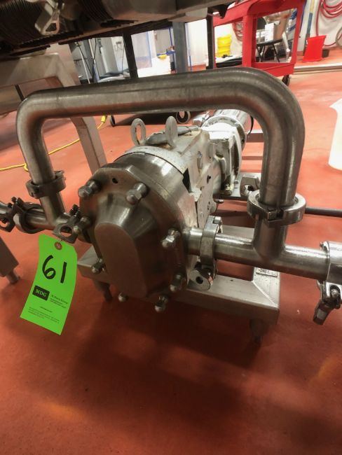 Waukesha Cherry Burrell 2-HP Positive Displacement Pump, Model 030U2, S/N 1000002750765, Mounted on S/S Skid, Equipped with Sterling 1720 RPM All S/S Motor, 208-230/460 V (Rigging, Loading and Site Management Fee: $500)