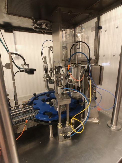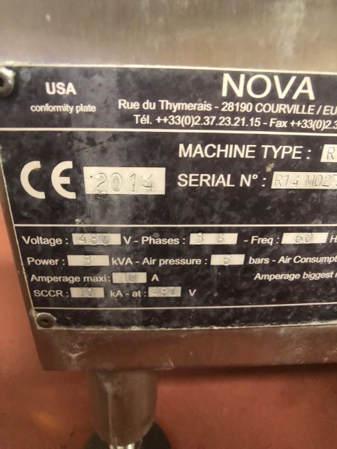 2014 Nova (Serac Group) 12-Pocket Rotary Drinkable Yogurt Filler, Model R 16 M 95 VERRE, S/N R 14 MO 27.0, Includes (2) Foil Sealing Stations, Previously Running Glass Stanpac 5 Oz Round Bottles, Bottle Dimensions: 3" Tall x 3" Wide, 3" Diameter Foil Seal, 480 V (Rigging, Loading and Site Management Fee: $3,500)