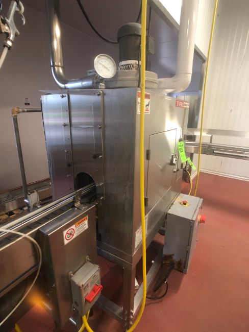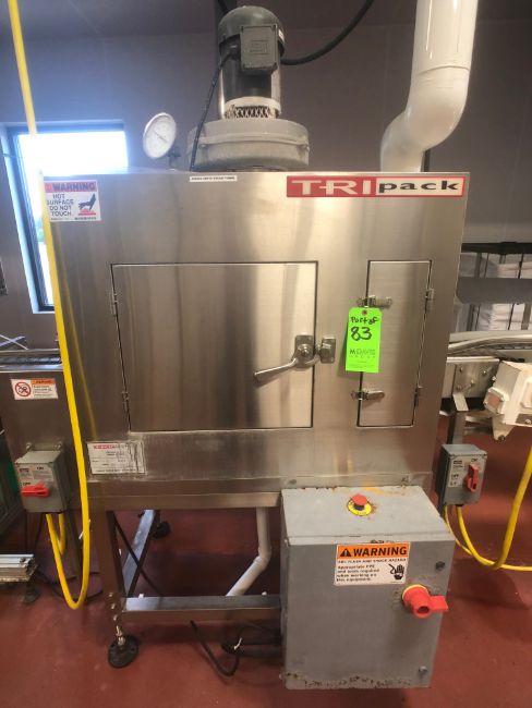 TriPack Shrink Sleeve Labeler, Model LSA160, S/N 5804, TriPack Shrink Steam Tunnel, Model ST-3 4.5, S/N 6339, Includes Approx. 12' Mat Top Conveyor (3-1/2" & 4-1/2"), (2) Conveyor Drive Motors (Rigging, Loading and Site Management Fee: $500)