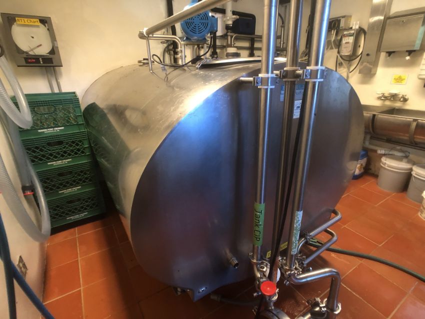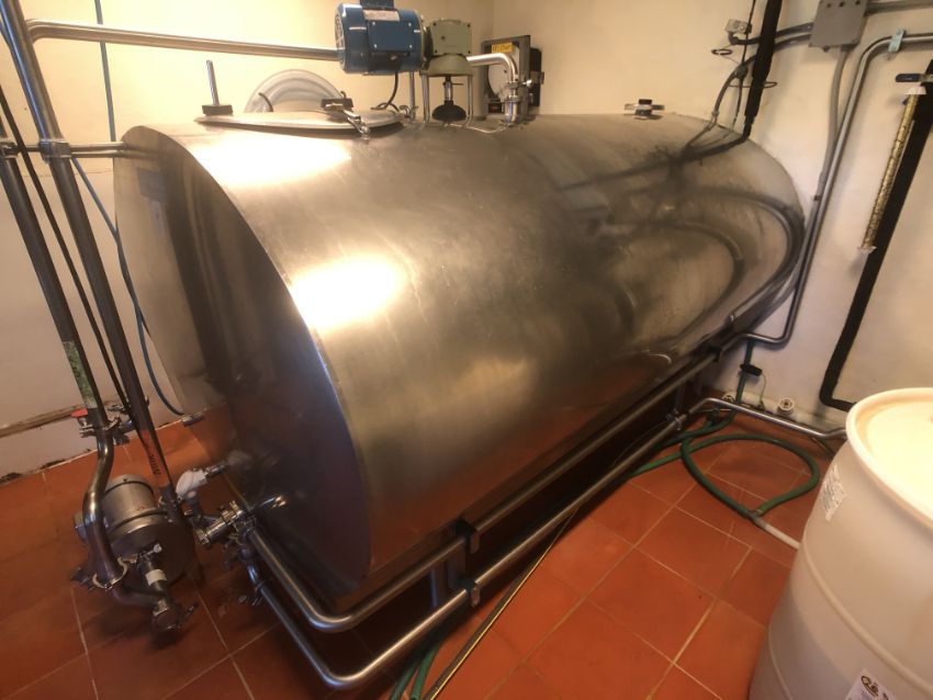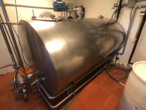 Mueller 600 Gallon Double Wall Jacketed S/S Farm Tank, Top-Mount 1/2 HP Prop Agitation, CIP Spray Ball, 1725 RPM, 230 V, 1 Phase (Located 2 Miles From Main Plant) (Rigging, Loading and Site Management Fee: TBD)