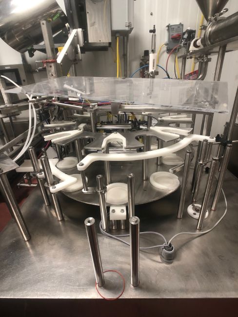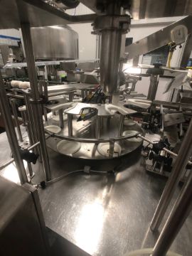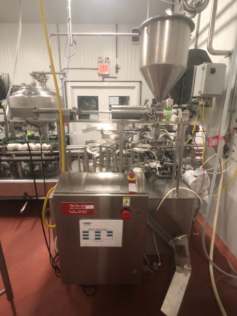 Pactec 8-Station Neck Gripping Piston Filler, Model PTR-6S, S/N 2238, Previously Filling Drinkable Yogurt in Round 32 Oz (Quart) Glass Stanpac Bottles, Snap Capper, Onboard Control Cabinet Equipped with MicroLogix 1400 PLC Controller (Rigging, Loading and Site Management Fee: $2500)