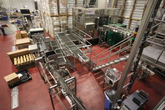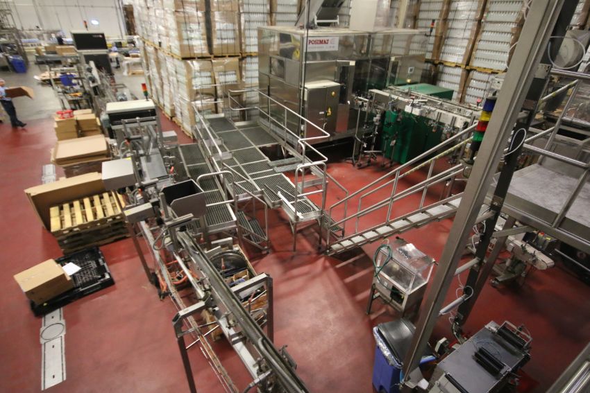 Sentry Aprox. 200' S/S Bottle and Product Conveyor System, Single Filer Section, 7-Bank Control Panel with PLC Controls, SEW Drive, VFD, Micro-Switches and Reject System & S/S Operators Platform (Located in Yorba Linda, CA) (SOLD SUBJECT TO CONFIRMATION) (Rigging Fee: $7,000 Prepped for transport, Loaded on Trucks)