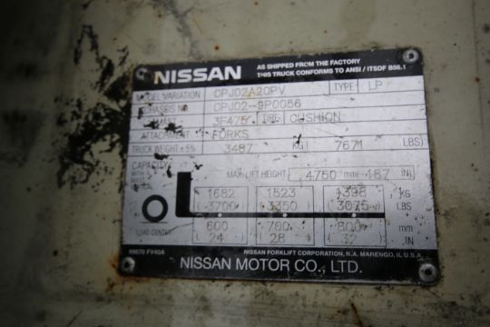 Nissan Sit-Down Forklift (not operational) (Located in Yorba Linda, CA) (Rigging Fee: $200 Loaded on Truck)