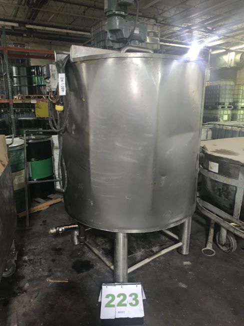 400-Gallon Stainless Steel, Jacketed and insulated process mix tank with scrape surface mixing arms and a SEW gear drive run by a 2 HP motor. Board certified by Specific Mechanical Systems Ltd.; Maximum Working Pressure is 50 PSI at 298 Degrees F; and MDMI = -20 F at 50 PSI. The tank Manufacture date is 2006 but has been unused for most of the time and its like new. Motor runs on 208/360 V, 60 Hz, with 6.86 or 3.96 Amps.  Motor RPM is 1720 and SEW gear drive ratio is 32:1. Comes on four legs; split half circle top doors with viewing windows. 3" opening at the bottom, and 3" opening on top.  Currently has some biobased products in it but will be cleaned before shipping to buyers. -- (LOCATED IN IOWA, RIGGING INCLUDED WITH SALE PRICE) -- Optional Palletizing Fee $125.00***EUSA***