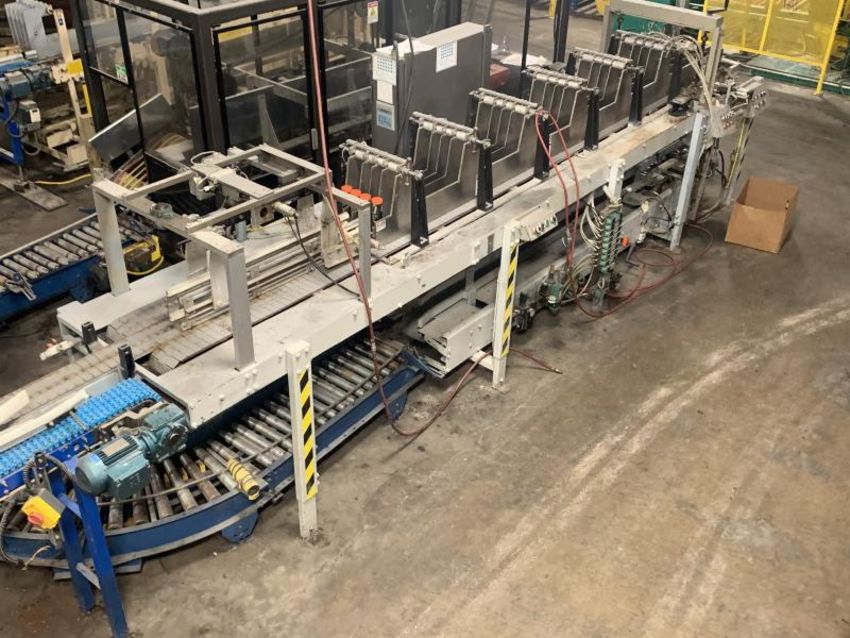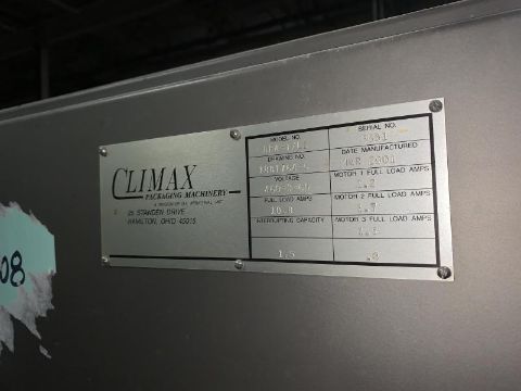 Climax Drop Case Packer with a large number of change parts – chutes, spacers and a U Shape powered roller conveyor to deliver boxes on the lower conveyor. Can adjust from 2 to 6 lanes with an air operated lane selector. Flexible for high speed packaging of all types bottles. It was originally used for packaging various shampoo bottles, we have used for packaging 8 OZ biobased lubricants. It will require a flatbed truck to ship; and requires $250 loading fee as we will need to contact the loading.
