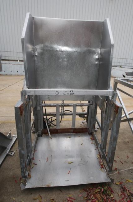 Hydraulic Tote Dumper, Mostly S/S Constructed, Dump Station Area Dim. 50" W x 48" D x 97" H, (Note: Pump Not Included), (Overall Dim. 81" L x 65" W x 102" H) (Rigging, Loading & Site Management Fee $250.00) (Located Pittsburgh, PA)