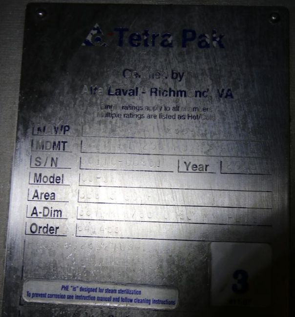 2008 Tetra Pak S/S Plate Press Frame, Model C8-SH, SN 30110-66931, MAWP 290 psi @ 230 degree F, (Note: Plates Not Included), (Overall Aprox. Dim. 74" H x 56" L x 26" W) (Rigging, Loading & Site Management Fee $250.00) (Located Pittsburgh, PA)