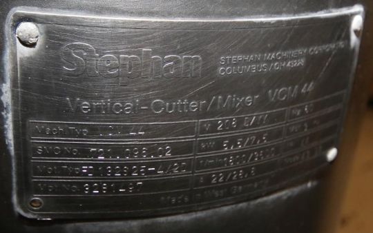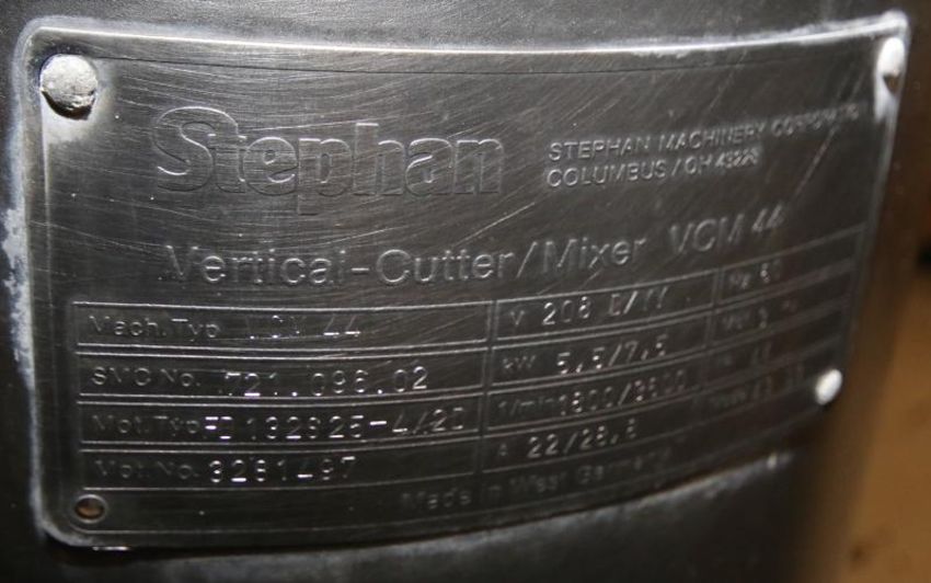 Stephan VCM, Model VCM44, SMC #721.096.02, 208 V, 3 Phase, Inside Bowl Dimensions Aprox. 19" W x 12" Deep (NOTE: Missing Blades) (Rigging, Loading & Site Management Fee $500.00) (Located in Pittsburgh, PA)
