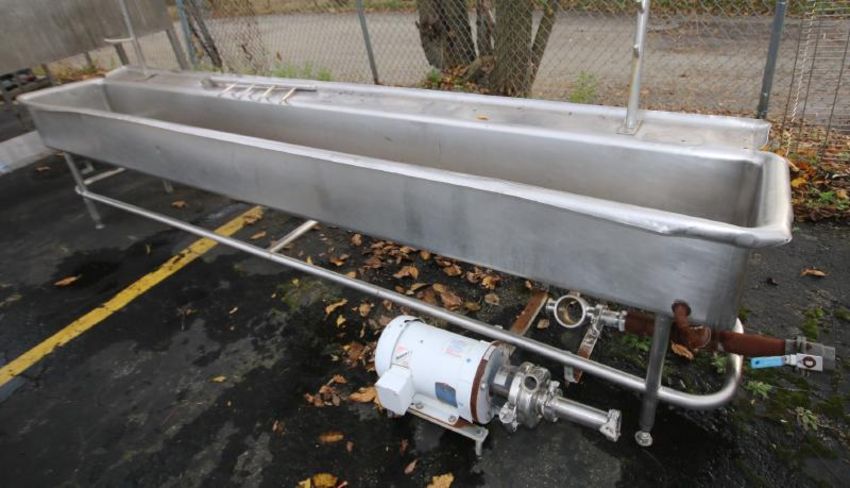 Aprox. 11 ft 5" L x 16" W x 11" D S/S Wash Trough, with CB 5 hp Centrifugal Pump (Rigging, Loading & Site Management Fee $200.00) (Located Pittsburgh, PA)