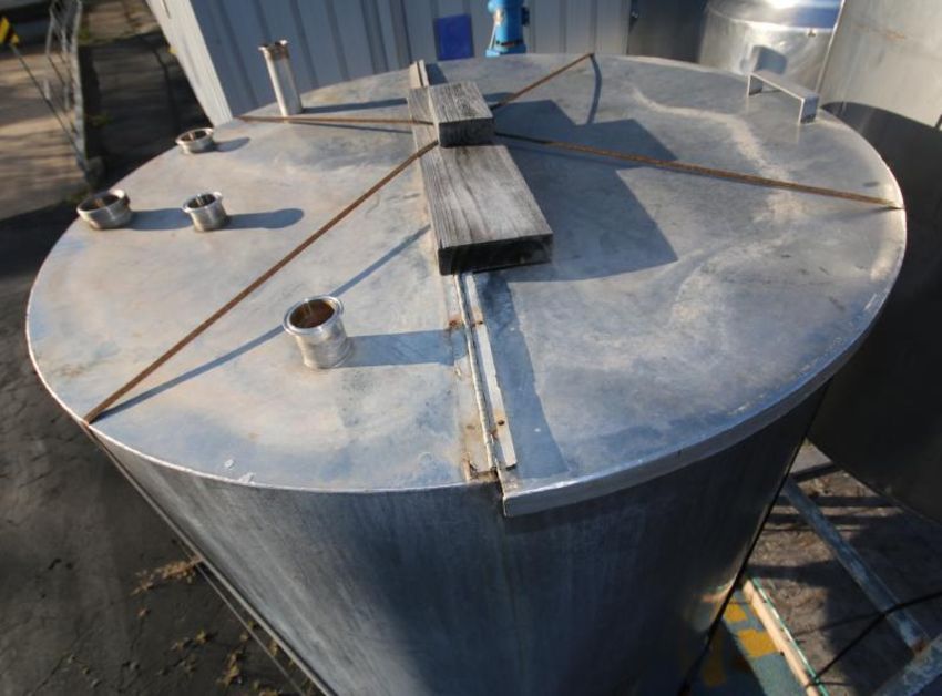 Aprox. 500 Gal. Hinged Lid Single Wall S/S CIP Tank, Sloped Bottom, 2" & 2.5" Connections, Steel Legs, (Aprox. Overall Dim. 5 ft W x 100" H) (Rigging, Loading & Site Management Fee $250.00) (Located Pittsburgh, PA)