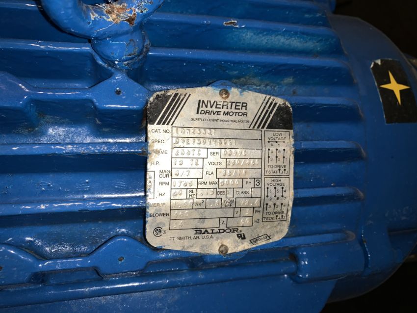 Frisam Stainless Steel Pump with super efficient Baldor 15HP motor rated at two speeds of 1750 and 5000 Max RPM. -- (LOCATED IN IOWA, RIGGING INCLUDED WITH SALE PRICE) -- Optional Palletizing Fee $45.00***EUSA***