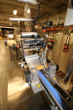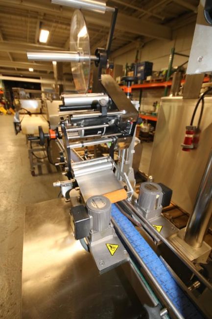 2017 Tadbik Pressure Sensitive Labeler, Model TD 700M, S/N 2962, Full Wrap Around Labeler with Large Die Cut Label Applied to Top with Side Wipers and Front and Back Wipers to Complete Label on Top and all 4 Sides, Previously Operating on 2017 Action Pak and Pack Line Cup Filling Line, Purchased New in 2017 for Aprox. $62,000.00 (Rigging, Loading & Site Management Fee $500.00) (Located in Pittsburgh, PA)