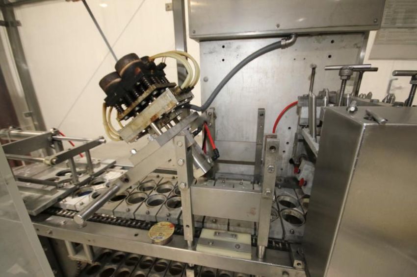 Auto Prod S/S 2-Lane Cup Filler, with 2-1/2" Dia. Cups, 10" L x 3" W Plates, (4) Filler Heads, with Tamper Evident Station, Overall Dims.: 142" L x 53" W x 92" H (Filler #5) (W922) (Located in Pittsburgh, PA) (Rigging, Loading & Site Management Fee $500.00)