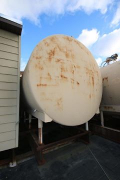 { Choice of lots: 70, 72 } Mueller 6,000 Gal. S/S Jacketed Horizontal Tank, S/N 1833400, with Dual Prop S/S Vertical Agitation, with Dual CIP Spray Ball, with S/S Air Valve, MAX W.P. 170 PSI @ 100 F, 0 F @ 170 PSI, NAT'L BD Number: 24843 (DA)