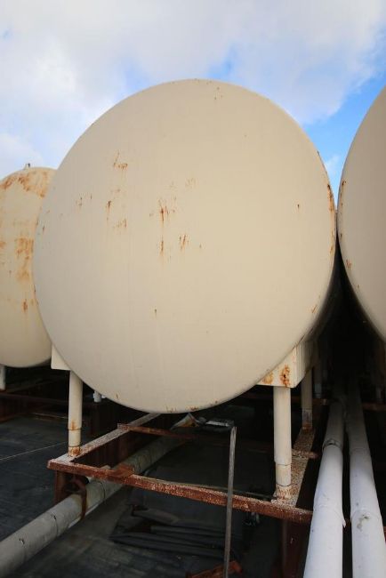 { Choice of lots: 71 } DCI 6,000 Gal. S/S Jacketed Horizontal Tank, S/N 94-D-49417-B, with (2) Quad Prop S/S Veritcal Agitators, with (2) Dual CIP Spray Balls, with Air Valve, with Painted Exterior (DA)