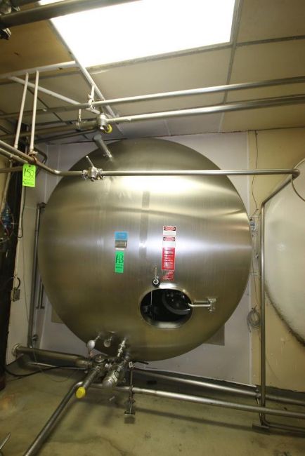 DCI 5,000 Gal. S/S Jacketed Horizontal OJ Tank, S/N 95-D-51257, with (3) CIP Spray Balls, with (2) Veritcal S/S Agitators, with 4-Props, with S/S Face, with S/S Air Valve (50% Ammonia Jacket) (DA)