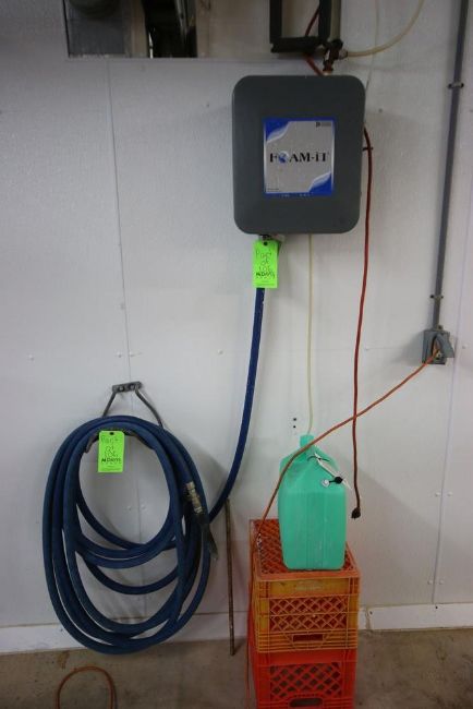 Remaining Contents in Casing Room, Including Foam It Foaming Station with Hose & Spray Nozzel, (2) Single Bowl S/S Sinks with Knee & Foot Controls, Hose with Nozzel & Wall Mounted Holder (DA)