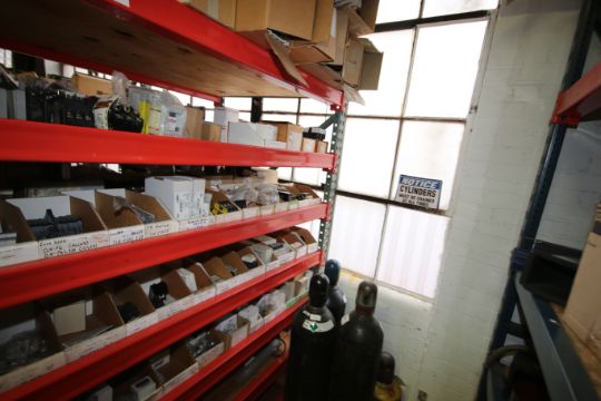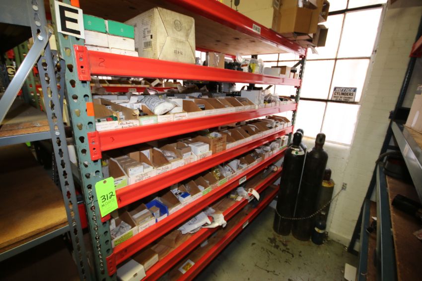 Parts Racking with Contents, Includes Terminal Boxes, Allen Bradley Switches, Telemecanique Overload Switches, End Caps, Light Bulbs, and Other Present Contents As Photgraphed (BM)