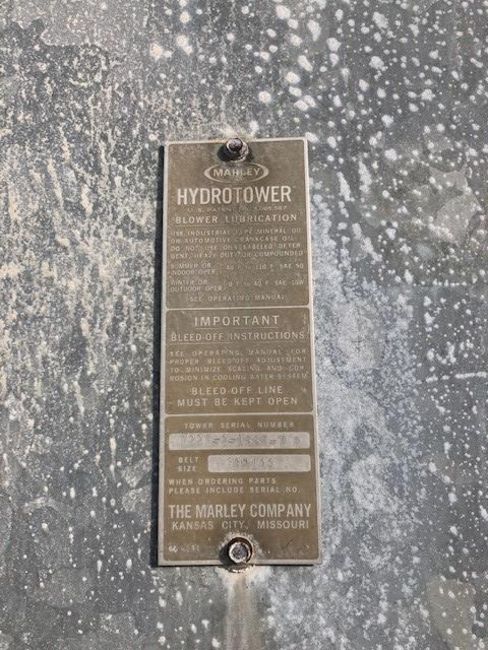 Hydrotower Evaporative Condenser, S/N 7225-2-1665-714, Belt Size: 3BP103, (NOTE: LOCATED ON ROOF) (BM)