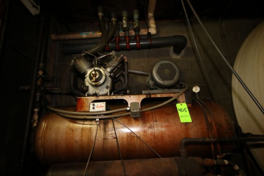 Aprox. 5 hp Air Compressor, with Horizontal Receiving Tank, with Spare Horizontal Receiving Tank, with Racking (DA)