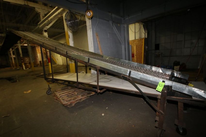 { Group of lots: 420, 421, 422, 423 } Straight Section of Power Conveyor, Including 90 Degree Turn & Decline Roller Conveyor, Aprox. 225' Overhead & Ground Level (BM)