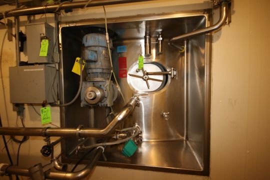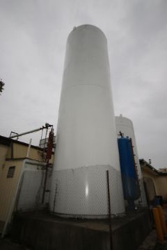 DCI 30,000 Gal. S/S Jacketed Silo, S/N 92-PH-45133B, with Side Mounted Bottom Agitation, with Reulance 6.23/3.125 hp Motor, 460 Volts, 3 Phase, with Tri-Clover Air Valve, with S/S Alcove, with Siemens Safety Switch & Panel, with King Gage Level Sensor, with Digital Read Out, with Tri-Clove S/S Air Valve, Aprox. 12' Dia. Silo, with Ladder & Top Man Platform, with External Ammonia Accumulation Tank, Painted Exterior, Ammonia Jacket (DA)