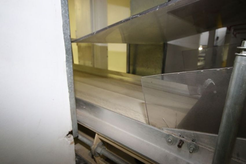 { Group of lots: 226, 227, 228, 229, 230, 231 } Plastic Process Equipment Power Conveyor, Aprox. 12' L x 18" W Belt, Stands Aprox. 85" Above Floor (BM)